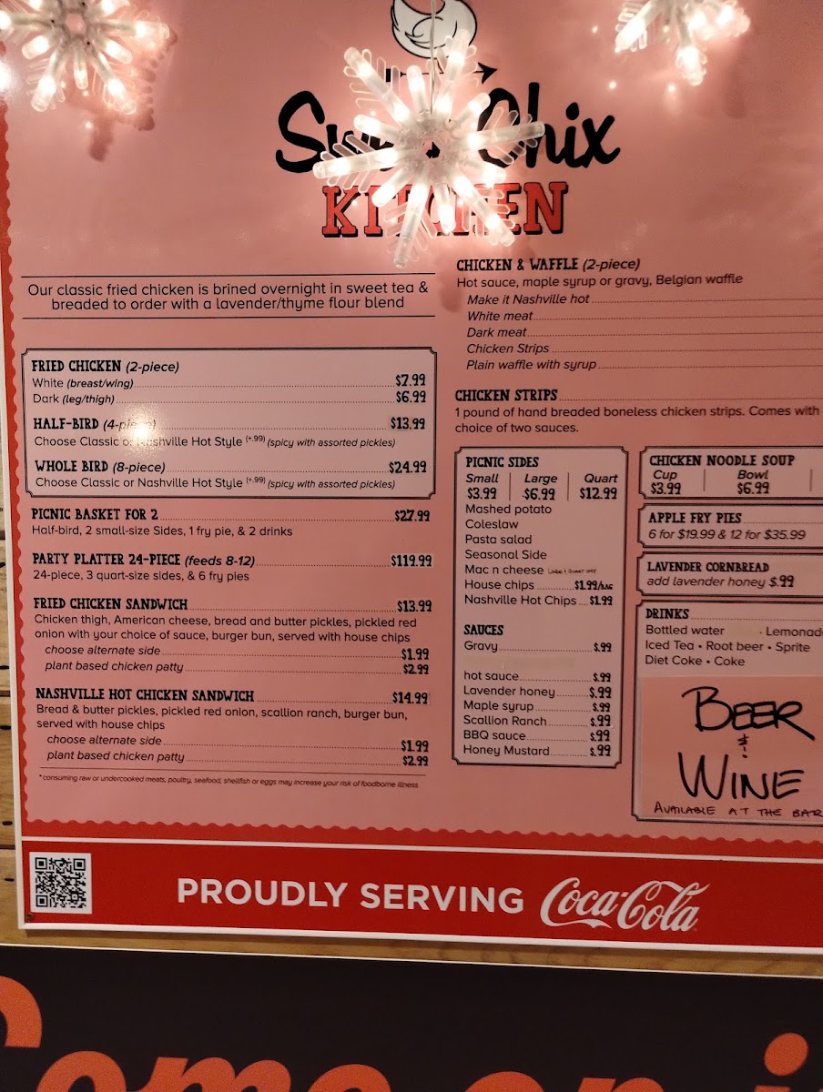 Not only does Sweet Chix Kitchen excel in chicken, but their homemade lavender cornbread—topped with honey—is a must-try highlight. Visitors have also praised the refreshing homemade sweet tea and zesty lemonade, enhancing the overall dining experience.