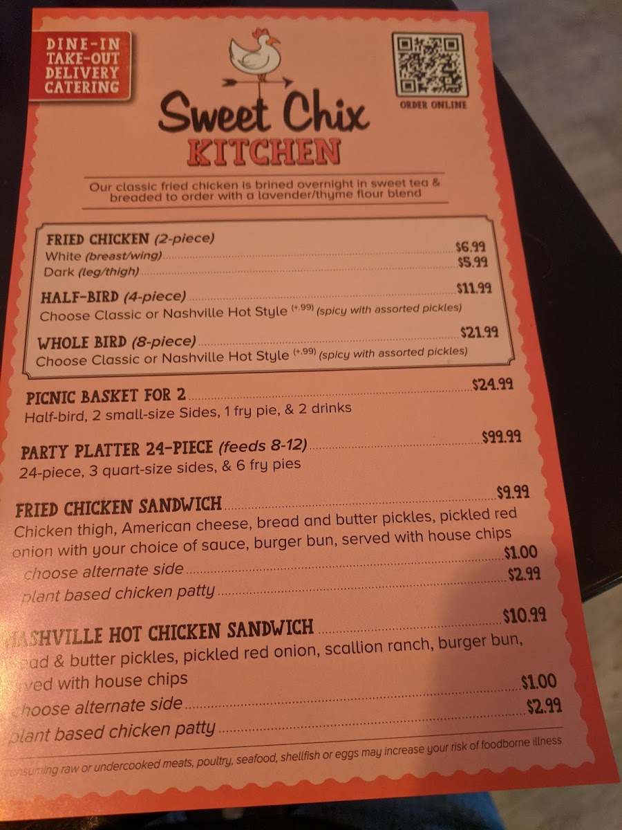 Moreover, menu diversity caters to all dietary preferences, offering gluten-free options and vegetarian delights that satisfy everyone's palate. With generous portions, friendly service, and a cute dining area, Sweet Chix Kitchen is a go-to destination for delicious comfort food!